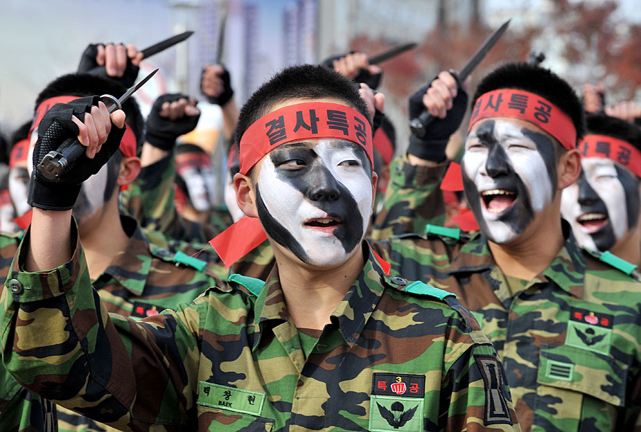 11月16日,韓國(guó)在距首爾以北30公里處舉行了由特種兵參與的反恐演習(xí)。圖片來(lái)源:中國(guó)新聞網(wǎng)