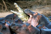鱷魚被河馬活活咬死