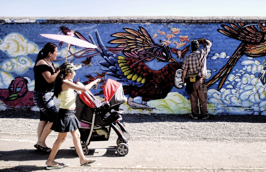 11月15日,智利圣地亞哥近千名藝術(shù)家繪制了1800米長的涂鴉墻,打破了吉尼斯世界紀(jì)錄。圖片來源:中國新聞網(wǎng)