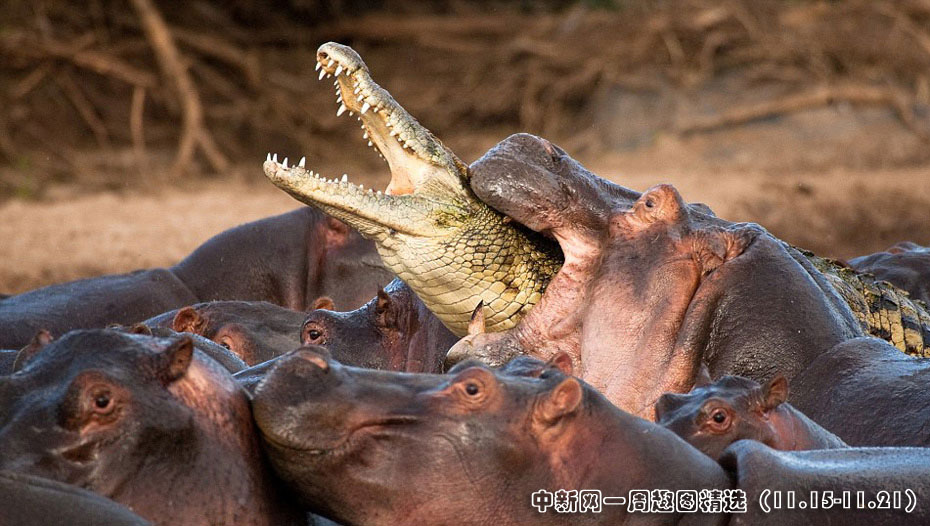 一條鱷魚悄悄混入了正在河里洗澡的河馬中,它很快就被敏感的母河馬發(fā)現(xiàn)。憤怒的河馬們立刻對它發(fā)起了猛烈地攻擊,這條冒失的鱷魚很快死于非命。圖片來源:中國新聞網(wǎng)>>點(diǎn)擊觀看詳細(xì)內(nèi)容