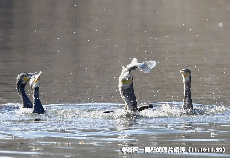 2009年11月19日,德國(guó)斯圖加特鸕鶿捕魚(yú)瞬間。圖片來(lái)源:中國(guó)新聞網(wǎng)