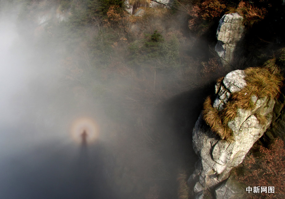 11月29日,受北方弱冷空氣影響,廬山出現(xiàn)平流云、佛光奇觀,佛光持續(xù)了近二個(gè)多小時(shí)。胡國(guó)林 攝 圖片來(lái)源:中國(guó)新聞網(wǎng)