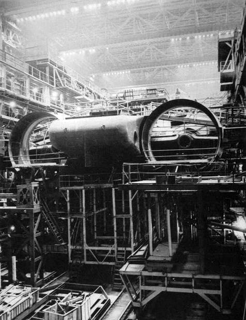 圖為建造中的“臺風(fēng)”級巨大的涵道式螺旋槳推進器。圖片來源:人民網(wǎng)