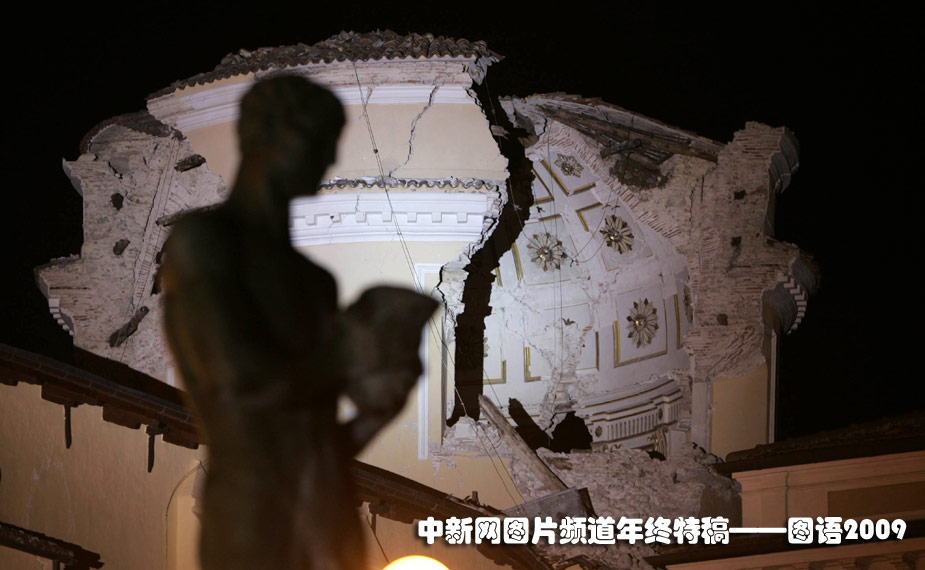 4月7日,意大利拉奎拉市眾多歷史悠久的建筑和文物在地震中嚴(yán)重受損。