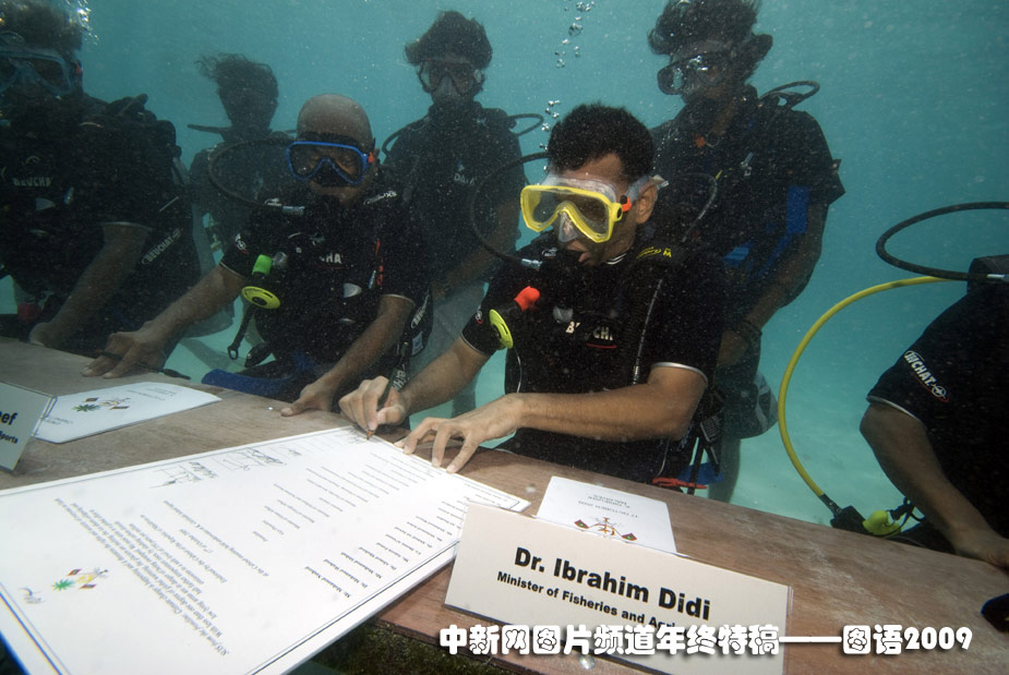 10月17日,印度洋島國(guó)馬爾代夫首次在水下召開(kāi)內(nèi)閣會(huì)議。由總統(tǒng)納希德親自主持,十四名內(nèi)閣部長(zhǎng)參加。