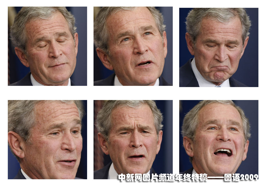 表情豐富的小布什:2009年1月12日,美國現(xiàn)任總統(tǒng)布什在白宮舉行告別記者會(huì)時(shí)的所作的喜怒哀樂表情。