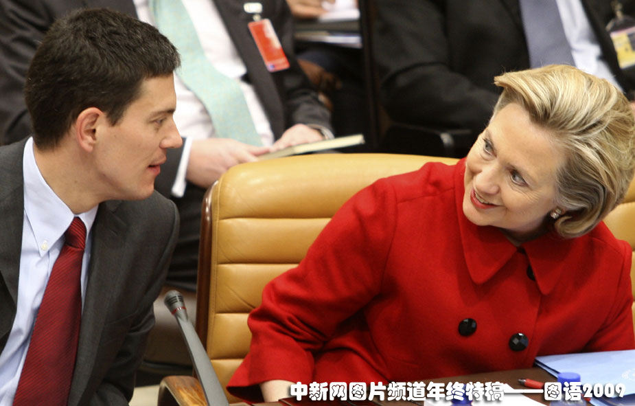 打情罵俏:2009年12月4日,布魯塞爾北約外長會(huì)議美國國務(wù)卿希拉里與英國外交大臣米利班德兩人有說有笑,關(guān)系似乎十分“曖昧”。
