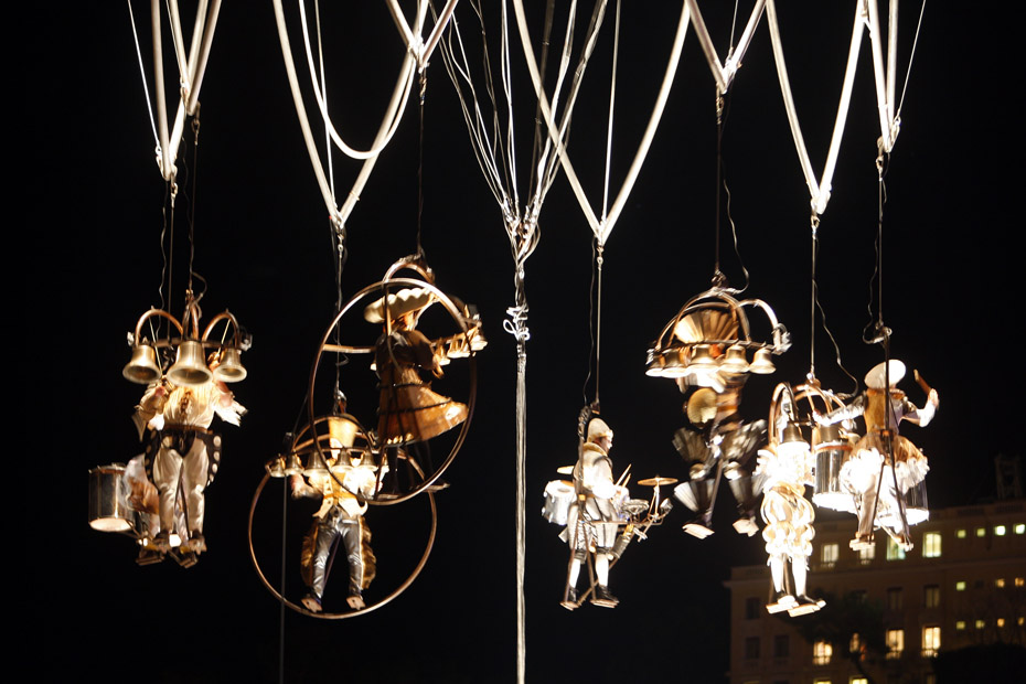 12月9日,墨西哥音樂舞蹈藝術(shù)家們進(jìn)行了一場“空中快車”表演,摩納哥的藝術(shù)家們吊在起重機(jī)上演奏樂器并表演空中舞蹈。圖片來源:中國新聞網(wǎng)