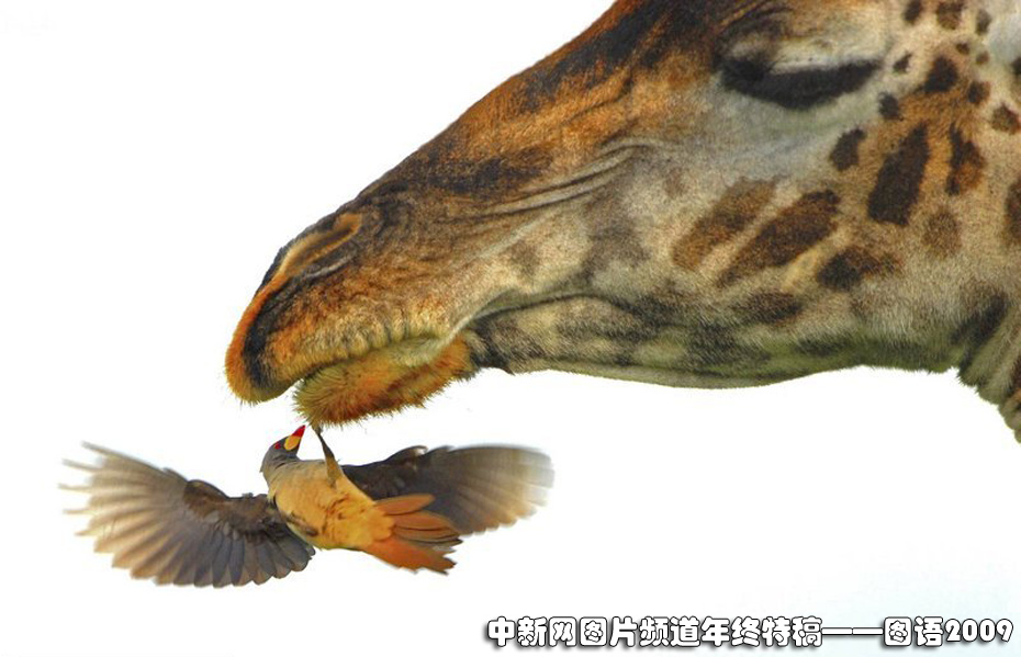 攝影師Billy Dodson在非洲塞倫蓋蒂國家公園拍攝到了這個有趣的畫面。這只黃嘴啄牛鳥看起來似乎像在與長頸鹿親吻。而實際上它只是在吃長頸鹿皮毛上的寄生蟲。