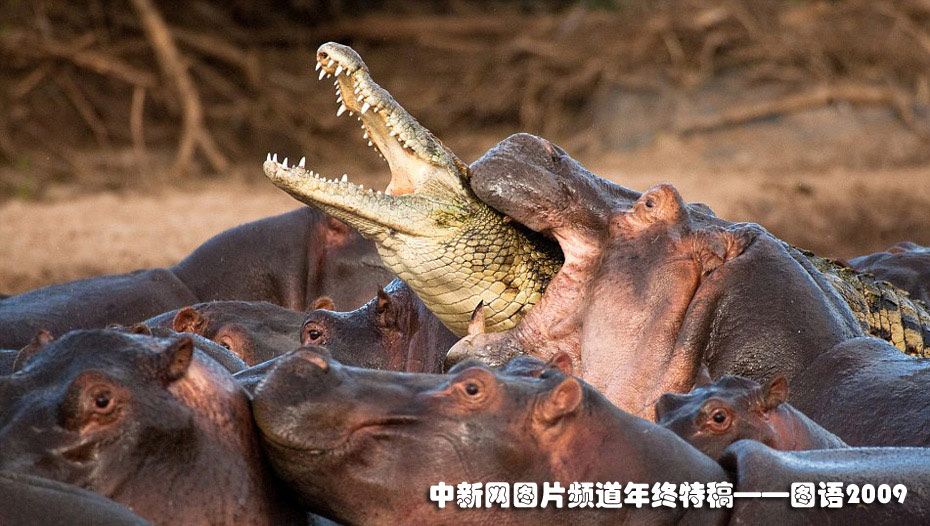 捷克野生動(dòng)物攝影師Vaclav Silha在坦桑尼亞塞倫蓋蒂國(guó)家公園里拍攝到了非常令人震撼的場(chǎng)面。當(dāng)時(shí),一條鱷魚悄悄混入了一群正在河里洗澡的河馬中,但由于與一頭帶著小河馬的河馬媽媽太過(guò)接近,它很快就被敏感的母河馬發(fā)現(xiàn)。憤怒的河馬們立刻對(duì)它發(fā)起了猛烈地攻擊,這條冒失的鱷魚很快死于非命。