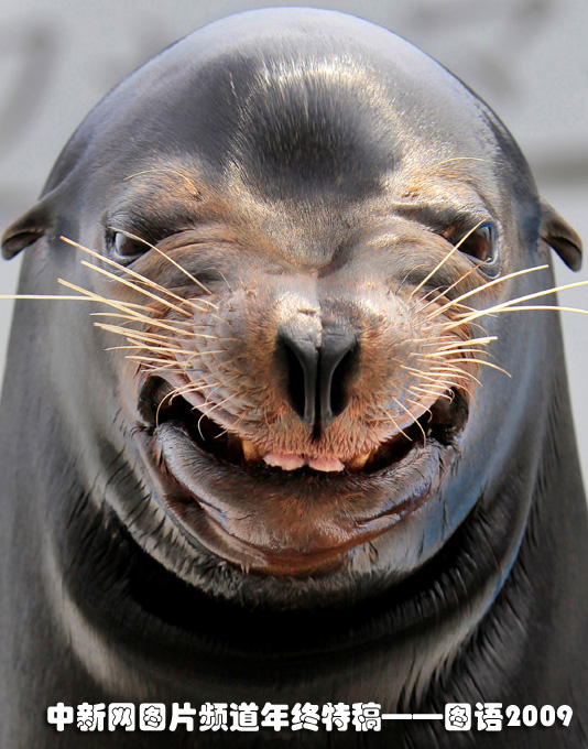 日本東京,一只調(diào)皮的海獅在對著觀眾們“微笑”。