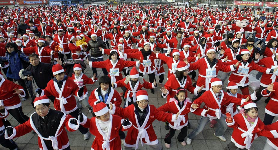 12月12日,“圣誕老人”馬拉松賽跑當(dāng)日在首爾舉行。超過一千名“圣誕老人”參加了此次長(zhǎng)跑活動(dòng)。