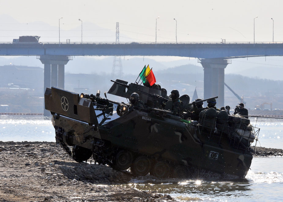 12月16日,韓國(guó)第20師團(tuán)機(jī)械化部隊(duì)在京畿道驪州南漢江一帶進(jìn)行大規(guī)模渡河實(shí)戰(zhàn)訓(xùn)練。該訓(xùn)練以培養(yǎng)戰(zhàn)斗執(zhí)行能力為重點(diǎn)。圖片來源:中國(guó)新聞網(wǎng)