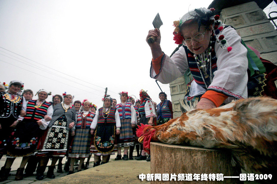 保加利亞“公雞節(jié)”——保加利亞首都索非亞東部一個村莊2月2日慶!肮u節(jié)”,當(dāng)?shù)貗D女手舉穿著褲子的公雞又唱又跳,之后宰殺公雞作為祭祀貢品。當(dāng)?shù)貞c祝該節(jié)意在為家中男孩祈求健康。