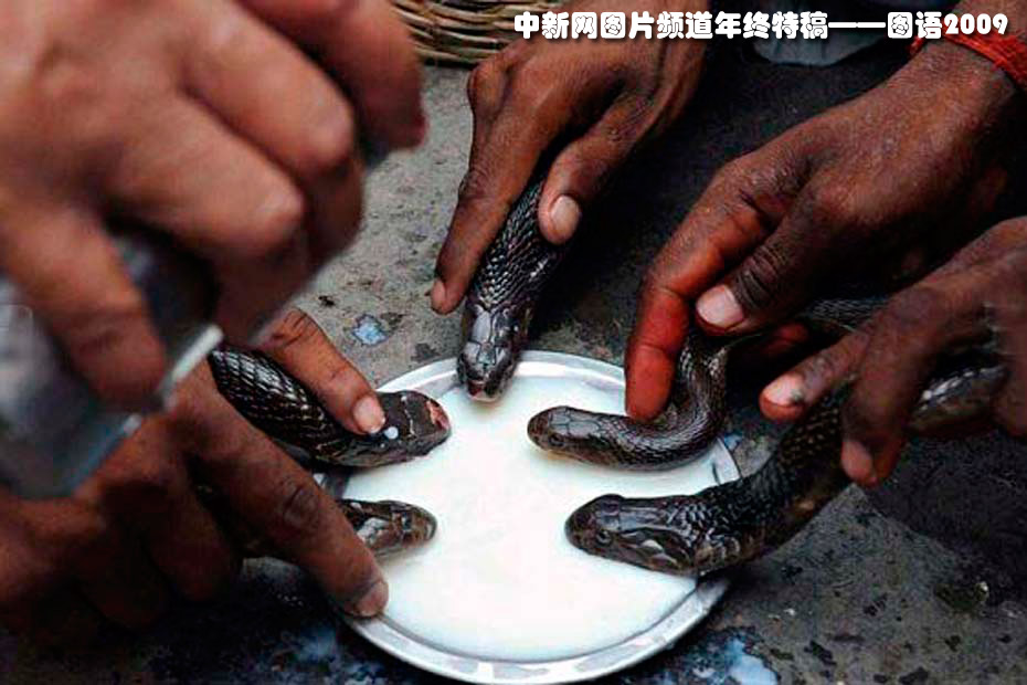 印度教“蛇節(jié)”眼鏡蛇洗牛奶浴——7月26日,印度北部城市阿姆利則一座印度教神廟內(nèi),耍蛇人將眼鏡蛇浸入牛奶中。當天是印度教傳統(tǒng)節(jié)日——蛇節(jié)(Nag-Panchami),眾多印度教徒紛紛前往寺廟進行膜拜。
