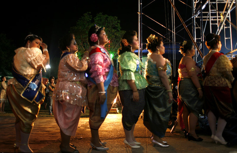 2009年12月19日,泰國大城,30多位體重超過80公斤的選手參加了胖美人大賽的角逐。