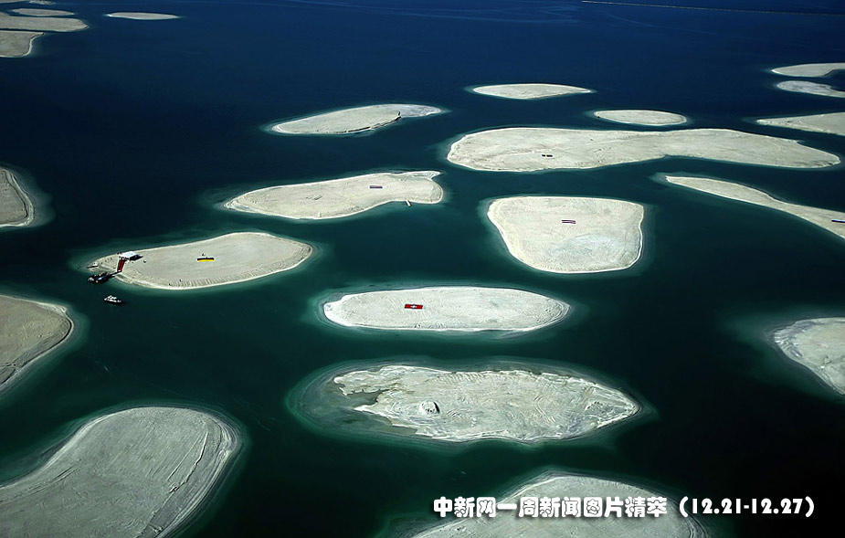 21日(周一)拍攝的這張鳥瞰圖展示出迪拜海岸邊名為“世界”的人造島群。