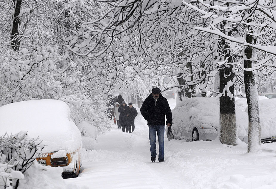 圖為12月29日,烏克蘭首都基輔人們行走在滿是積雪的街道上。