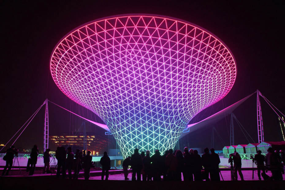 12月30日,上海世博園“一軸四館”燈火通明,中國(guó)館、世博主題館,世博中心、陽(yáng)光谷等同時(shí)亮燈,不同建筑風(fēng)格的燈景交相輝映,流光溢彩,熠熠生輝喜迎“世博年”。