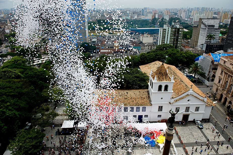 圖為12月31日,巴西人在圣保羅放飛可以分解的氣球,迎接新年的到來(lái)。