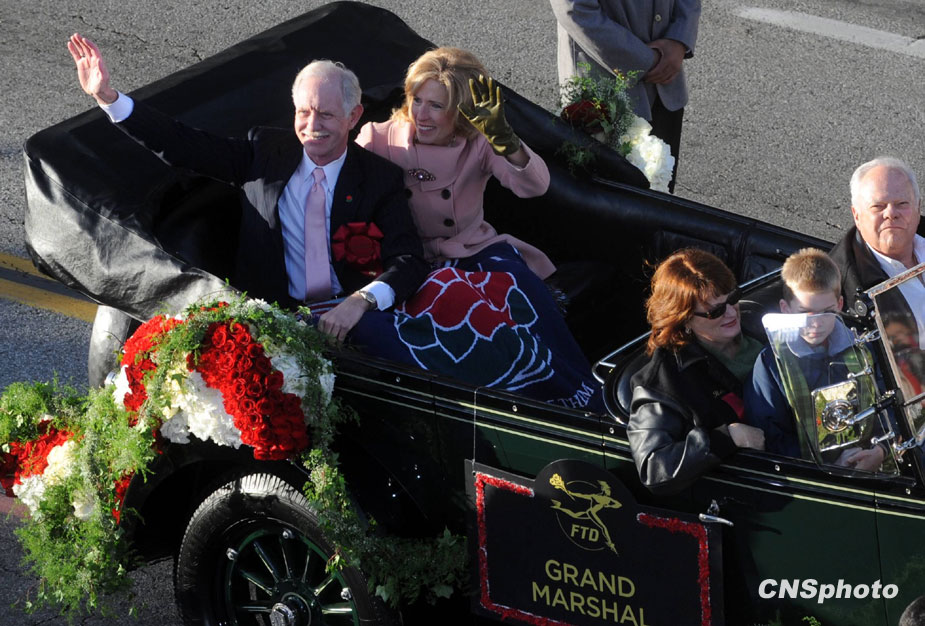 美國當(dāng)?shù)貢r(shí)間1月1日,第121屆美國玫瑰花車大游行在加州帕薩迪納市隆重舉行。著名影星成龍助陣中國上海世博花車。圖片來源:中國新聞網(wǎng)