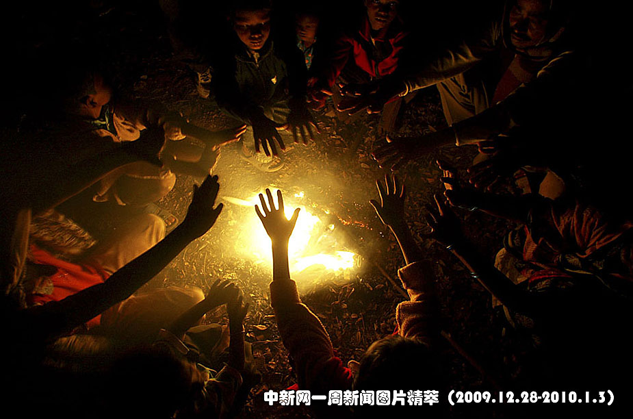 周二(29日),在印度布巴內(nèi)斯瓦爾一個(gè)貧民窟內(nèi),一群孩子圍在火堆旁烤火取暖。這個(gè)地區(qū)正在經(jīng)歷嚴(yán)寒天氣。圖片來源:中國新聞網(wǎng)