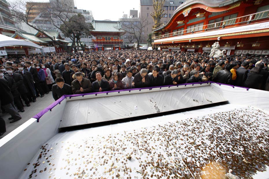 2010年1月4日,日本東京,商人聚集在神田神社里祈福,希望在新的一年里生意興隆。當(dāng)天是日本股市2010年首個(gè)交易日,市場升勢(shì)延續(xù)。圖片來源:中國新聞網(wǎng)