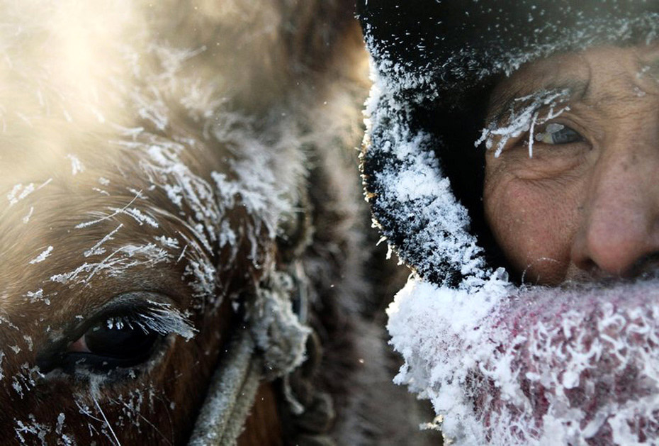 1月4日,黑龍江省安達(dá)市牲畜交易市場(chǎng)一農(nóng)民和他的馬在寒冷的天氣中。盛紅旭 攝
