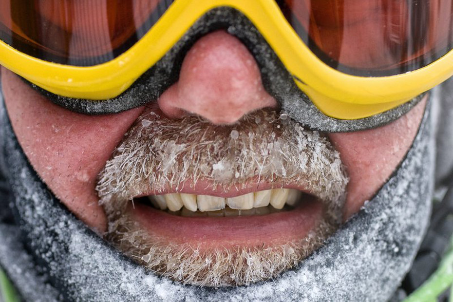 1月2日,瑞士阿羅薩,天氣嚴(yán)寒,一名男子的胡須也結(jié)了冰。