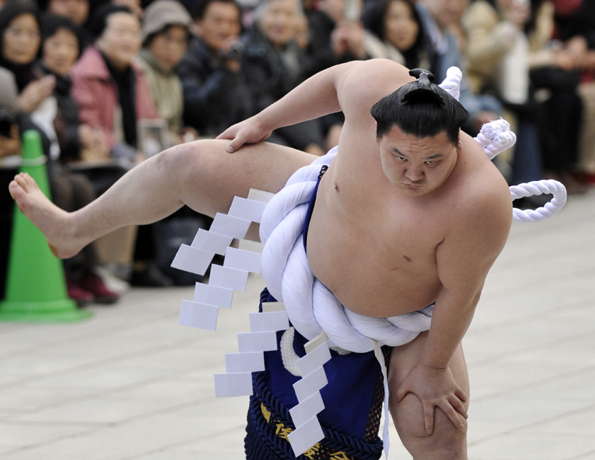 日本舉行相撲表演迎新年活動(dòng)