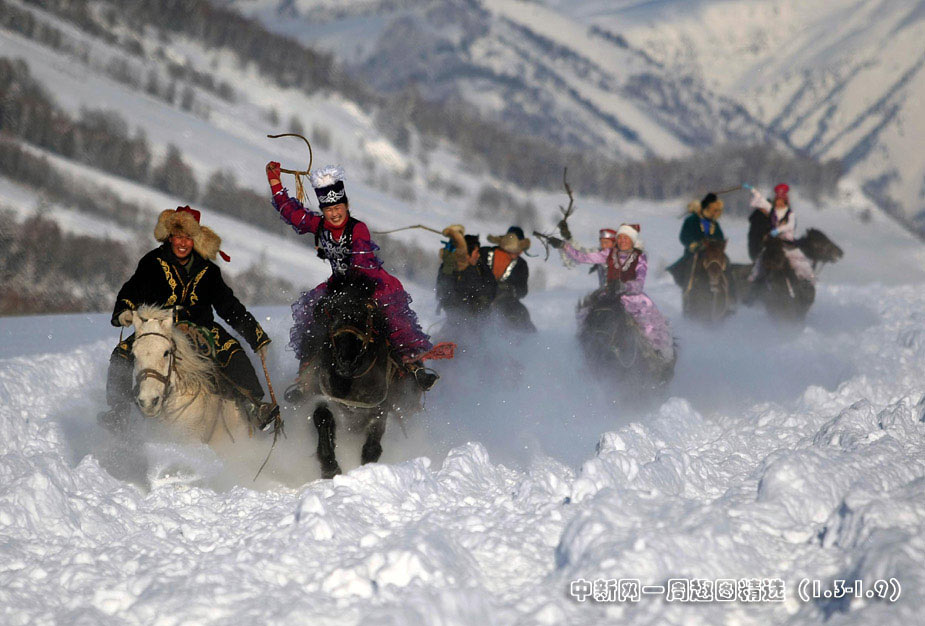 新年伊始,新疆布爾津縣喀納斯景區(qū)哈薩克族牧民在雪中表演傳統(tǒng)節(jié)目——姑娘追。圖片來源:中國新聞網(wǎng)>>點擊觀看詳細(xì)內(nèi)容
