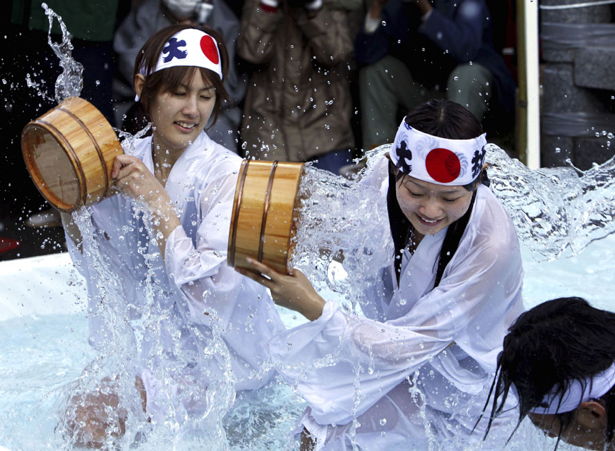 1月9日,日本東京,眾多日本民眾參加傳統(tǒng)的凈化儀式,他們用冷水澆身,祈禱身體和靈魂得到凈化。