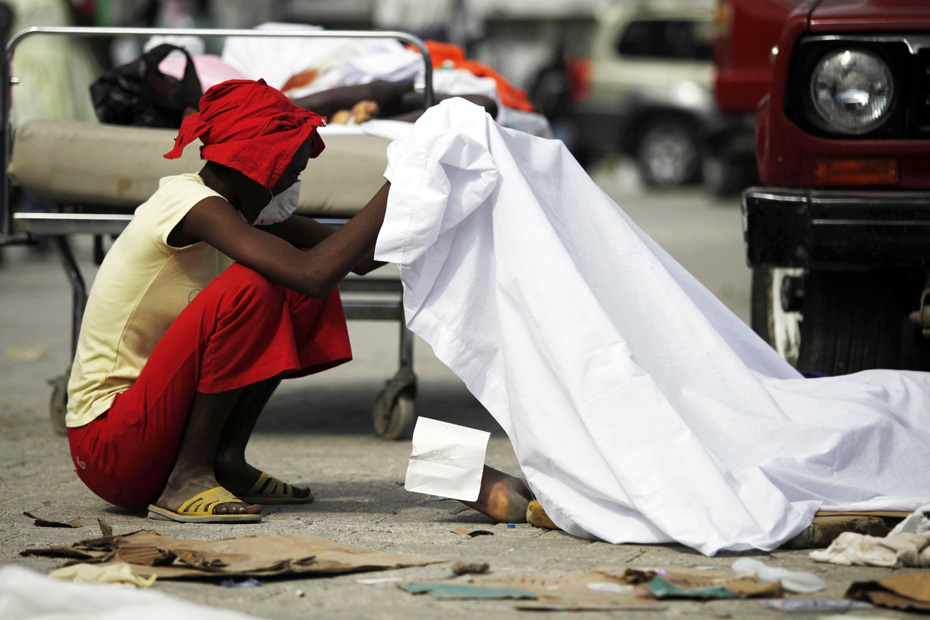 海地7級(jí)大地震后,街邊一排排無(wú)名尸體已開(kāi)始腐爛,在巨大的廢墟下時(shí)不時(shí)的傳出被壓難民的呻吟聲,幾乎夷為平地的首都太子港淪為露天難民營(yíng)。圖片來(lái)源:中國(guó)新聞網(wǎng)
