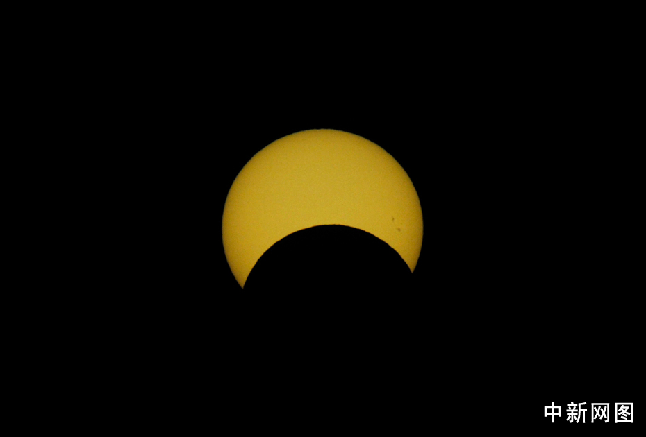 圖為北京時間16:18拍攝到的太陽。中新網(wǎng)記者 金碩 攝