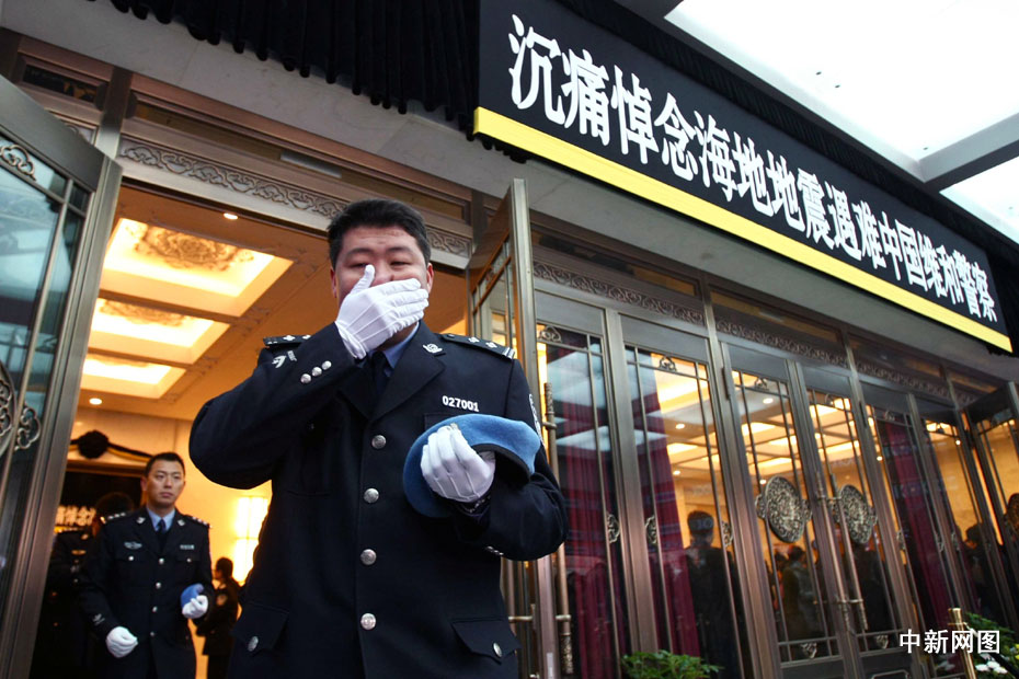 海地地震遇難中國維和警察遺體告別儀式1月20日上午9時在北京八寶山殯儀館大禮堂舉行。圖片來源:中國新聞網