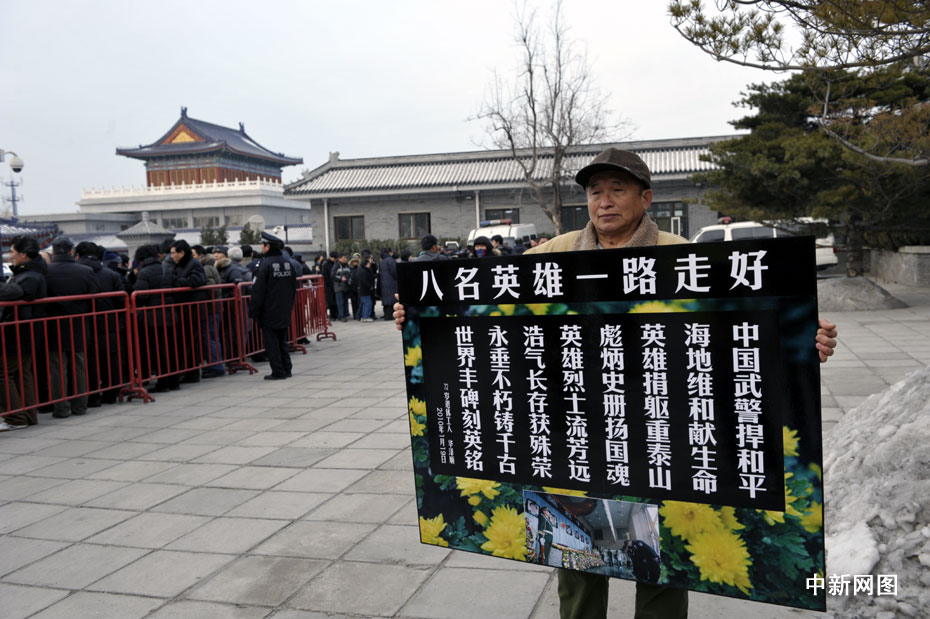 海地地震遇難中國維和警察遺體告別儀式1月20日上午9時(shí)在北京八寶山殯儀館大禮堂舉行。圖片來源:中國新聞網(wǎng)