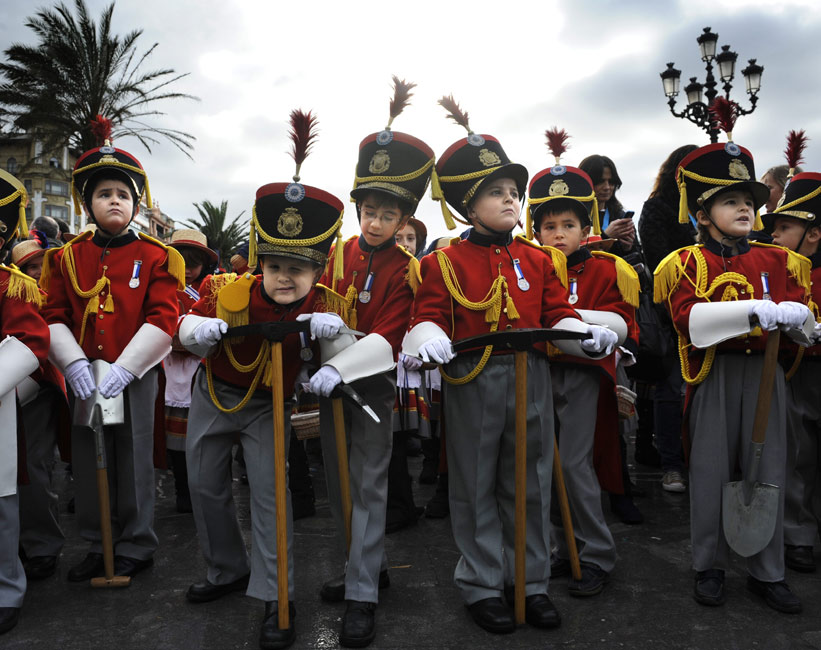 當(dāng)?shù)貢r(shí)間1月20日,西班牙迎來(lái)傳統(tǒng)的圣塞巴斯蒂安節(jié)。對(duì)圣塞巴斯蒂安人來(lái)說(shuō),這是一年中最隆重的節(jié)日。圖為兒童穿著士兵傳統(tǒng)服裝進(jìn)行游行。