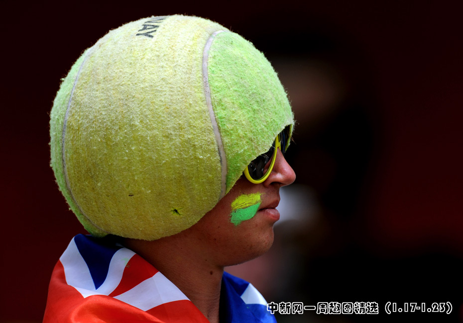 1月21日,澳大利亞墨爾本網(wǎng)球公開賽的第四天,一個(gè)頭戴巨型網(wǎng)球帽的觀眾在看臺(tái)上顯得格外特別。圖片來源:中國新聞網(wǎng)
