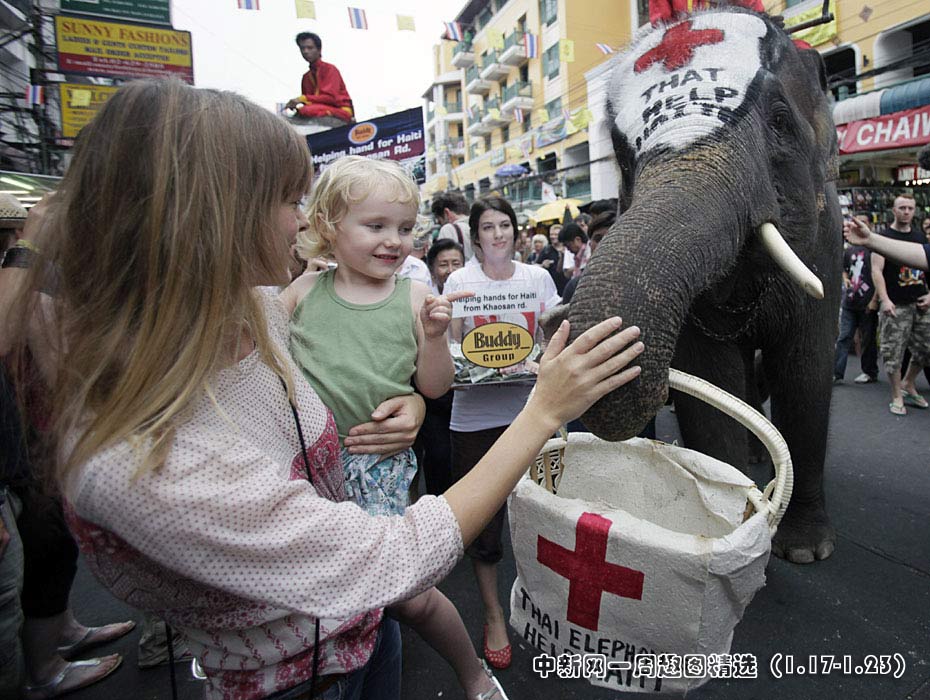 1月21日,在泰國首都曼谷舉辦了一場大象為海地災區(qū)募捐活動。人們紛紛向大象攜帶的籃子內(nèi)放入善款,向海地地震幸存者獻上一份愛心。圖片來源:中國新聞網(wǎng)>>點擊觀看詳細內(nèi)容