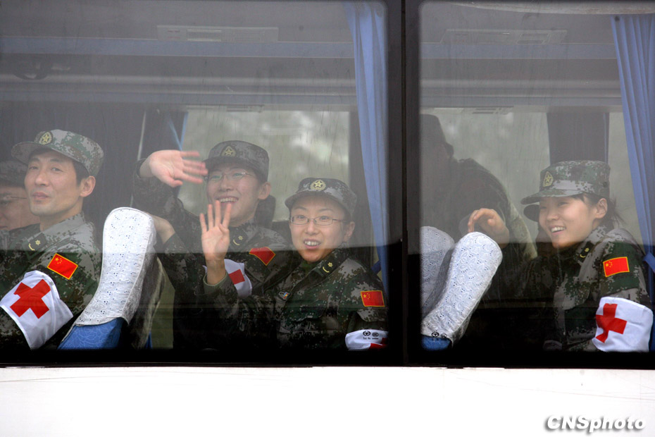 中國人民解放軍醫(yī)護(hù)人員和管理人員組成的中國醫(yī)療防疫救護(hù)隊(duì)一行40人乘坐軍運(yùn)包機(jī)離開北京,啟程前往海地進(jìn)行人道主義救援任務(wù)。中新社發(fā) 劉震 攝