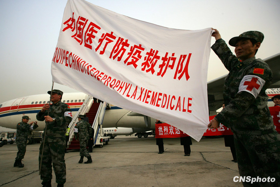 1月24日18時(shí),由中國(guó)人民解放軍醫(yī)護(hù)人員和管理人員組成的中國(guó)醫(yī)療防疫救護(hù)隊(duì)一行40人乘坐軍運(yùn)包機(jī)離開北京,啟程前往海地進(jìn)行人道主義救援任務(wù)。