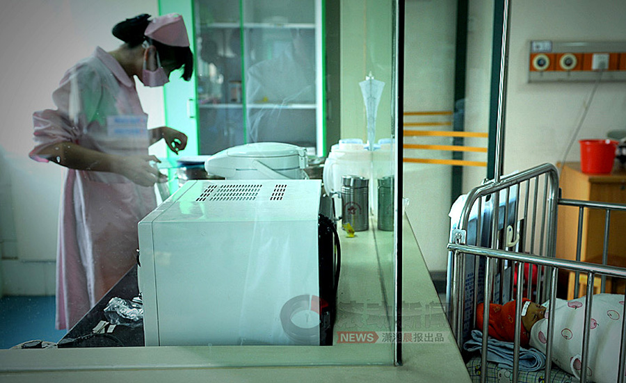 1月15日,小振和一個人安靜地躺在醫(yī)院的小床上,一旁的護士正在忙碌。瀟湘晨報 記者 楊抒懷 攝