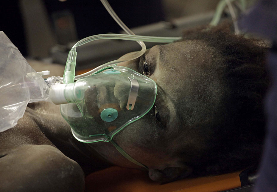 2010年1月27日,海地太子港,法國救援人員在一棟房屋的廢墟下救出被困15天的16歲女孩黛琳娜·艾提尼(Daline Etienne)。女孩微弱的話語讓大家著實吃驚:她竟是憑著隨身的可樂挺了過來。圖片來源:中國新聞網(wǎng)