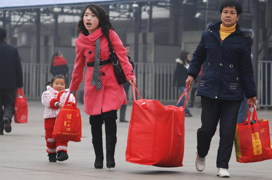 一年一度的春運今日起正式開始。2010年的春運從1月30日起至3月10日,為期40天,其中節(jié)前15天,節(jié)后25天。據(jù)權威預測,今年春運客運量料超25億人次。圖為1月30日,長沙火車站,出行的旅客攜帶著大小包裹匆忙趕路。郭立亮 攝