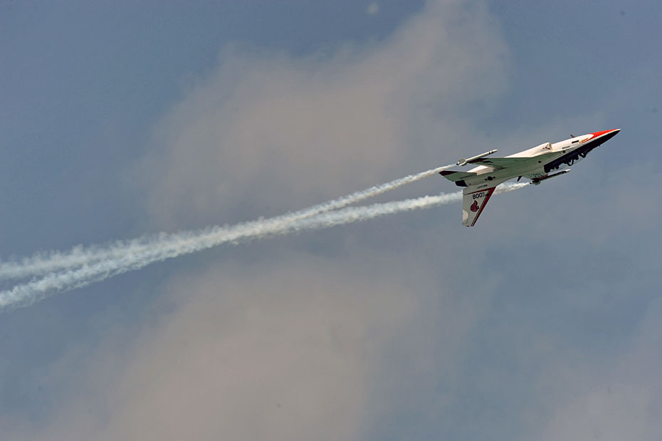 圖為T-50教練機(jī)在進(jìn)行飛行表演。