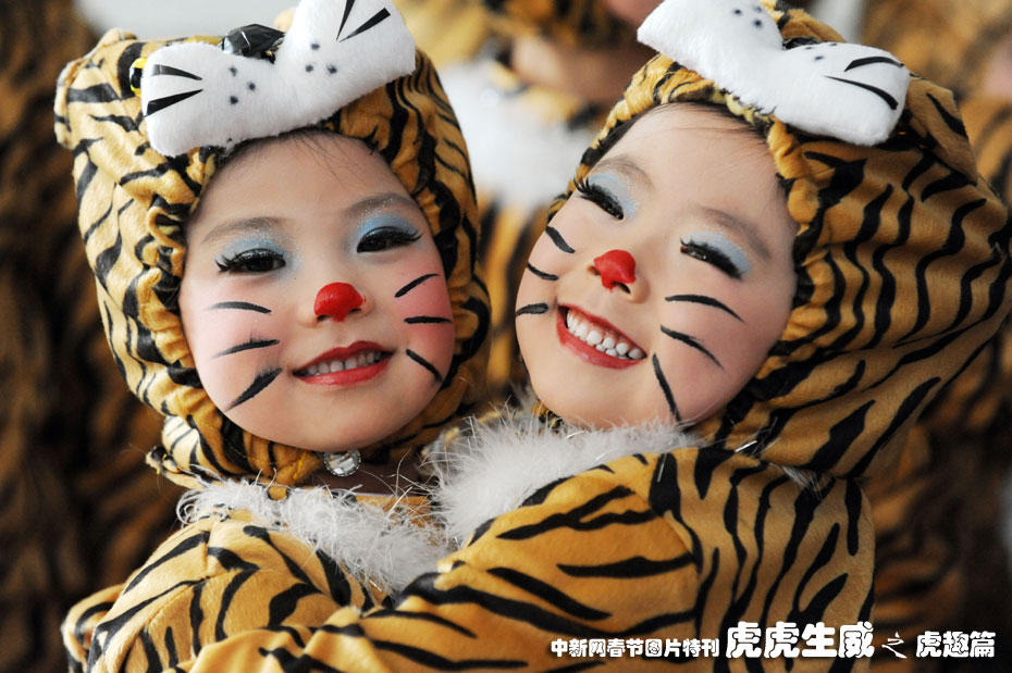 1月26日,在安徽省亳州供電公司舉辦的《和諧快樂(lè)》春節(jié)聯(lián)歡會(huì)上,來(lái)自舞蹈學(xué)校的小朋友表演的舞蹈“虎娃迎春”,受到觀眾的歡迎。中新社發(fā) 張延林 攝
