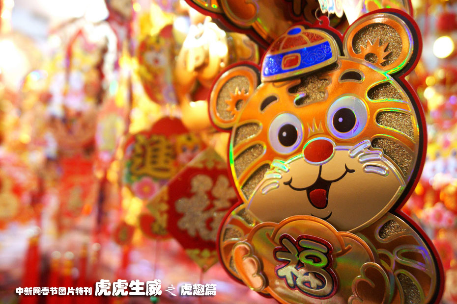 虎年臨近,各地有關“虎”的喜慶裝飾品熱銷。各種紅色布老虎掛飾、紅中國結營造出了紅紅火火的過年氣氛。中新社發(fā) 梁銘 攝