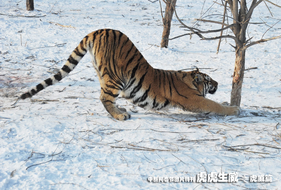 1月13日,黑龍江東北虎林園,老虎在雪地中嬉戲追逐。(王少華 張書(shū)儉 攝)