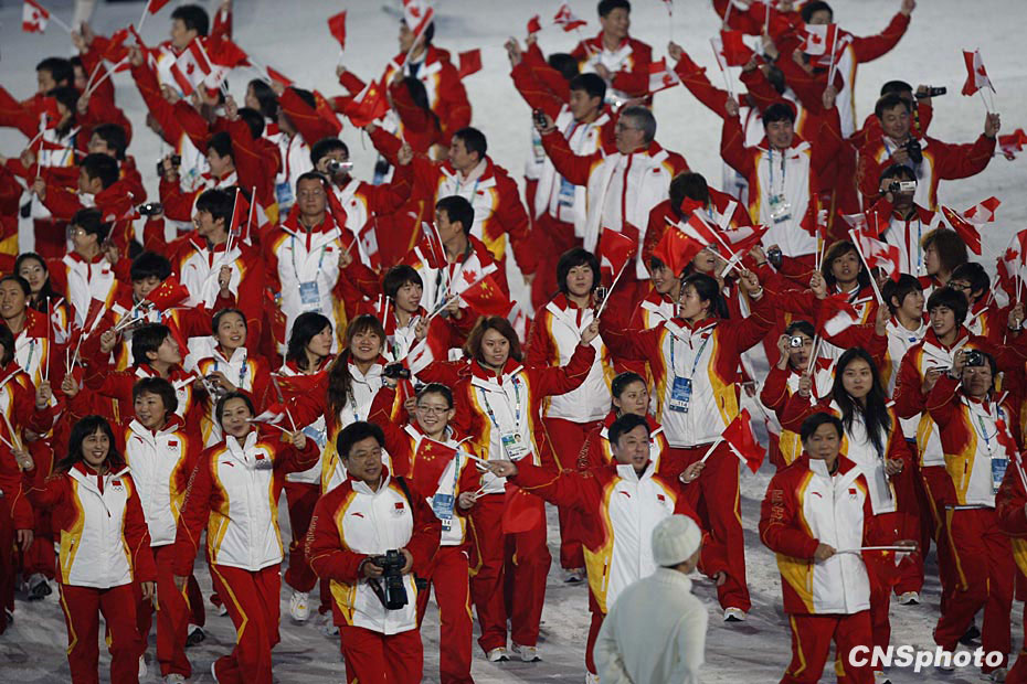 圖為中國冬奧代表團運動員入場。