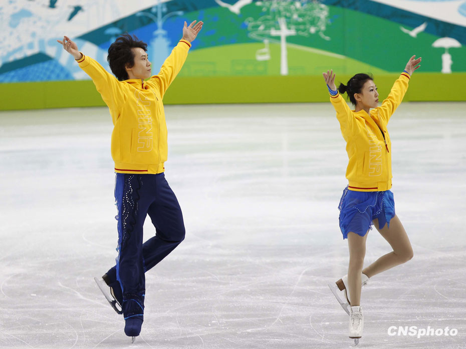 當(dāng)?shù)貢r間2月13日,中國花樣滑冰隊龐清/佟健、張丹/張昊在溫哥華太平洋體育館,利用最后的休息時間重復(fù)練習(xí)積極備戰(zhàn)即將到來的比賽。中新社記者 盛佳鵬 攝